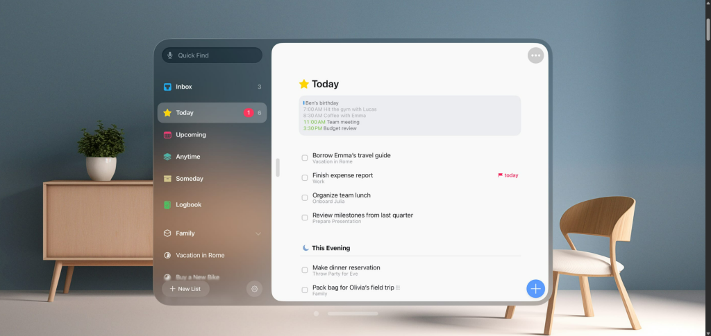 • Things 3:苹果生态体验最佳、交互与视觉极简、注重单人深度使用;适合重度 Apple 用户与追求极致体验的人。